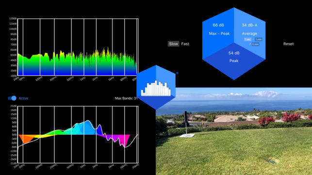 Acoustic Mastermind’s AcoustiTools app features an innovative design that simultaneously displays four active modules – the breakthrough AR Spatial Module that includes Volume Variance and Delay Calc, an extensive dB meter, a precise RTA and a Diagnostic Parametric Equalizer (PEQ) . The display allows you to view everything you need at a glance and quickly select a module to interact with.